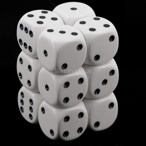 Chessex CHX25601 Dice-Opaque: 12D6 White/Black Set, One Size, Multicolor