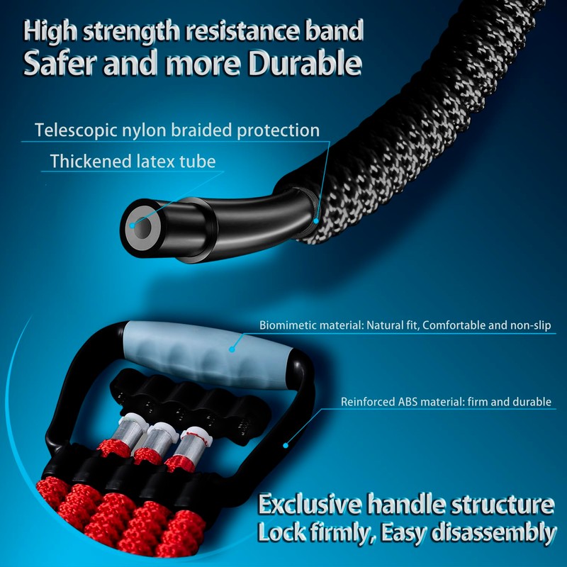 - Durable construction: The tension tube is made of high-quality latex material, protected with polyamide braid and has a strong plastic handle for long-lasting performance and safety.