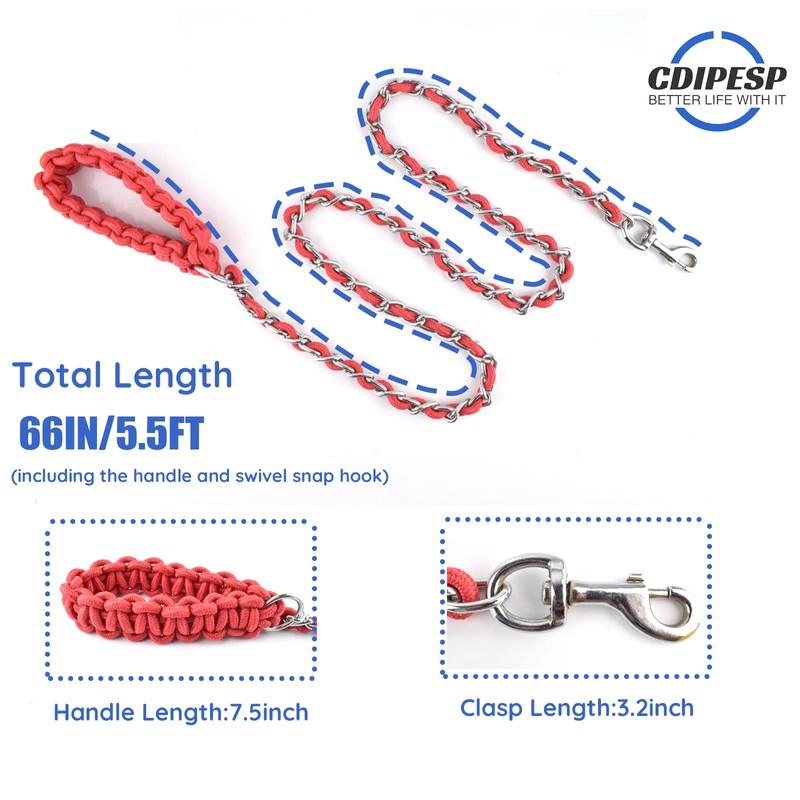 - Dog Chain Leash - Made of chrome plated metal and nylon rope. Enough to withstand super power, ideal for large, active, powerful dogs