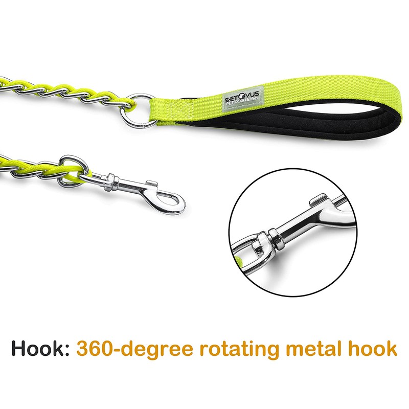 Chew Proof Metal Chain Dog Leash for Medium Large Dogs - 5FT Strong Anti Bite With Comfortable Soft Padded Handle - Yellow