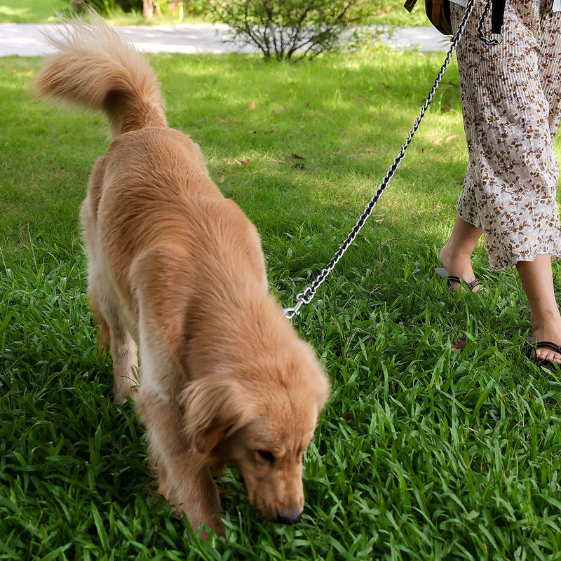 - [Durable and Chew Proof] - Our chain link dog leash using high quality plating process, comes with heavy duty swiveled clip, simple and practical, strong tensile resistance.