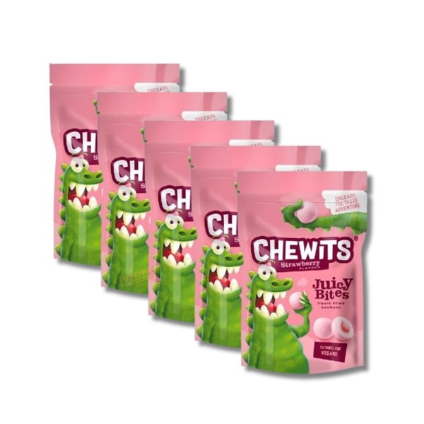 Chewits Raspberry, Strawberry, Apple & Lemon Sour Juicy Bites - 115g - 5x Multi Pack (5, Chewits Strawberry)