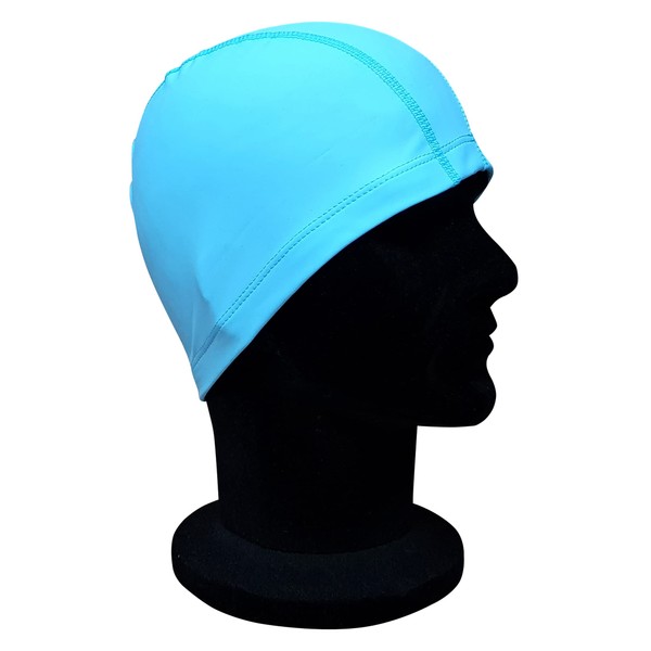 CHEX Comfortable Fit PU Swim Cap Stretchy Tear Resistant Easy Fit Lightweight Solid Color Plain One Size Fits All Ages 3+ Years (Sky Blue)