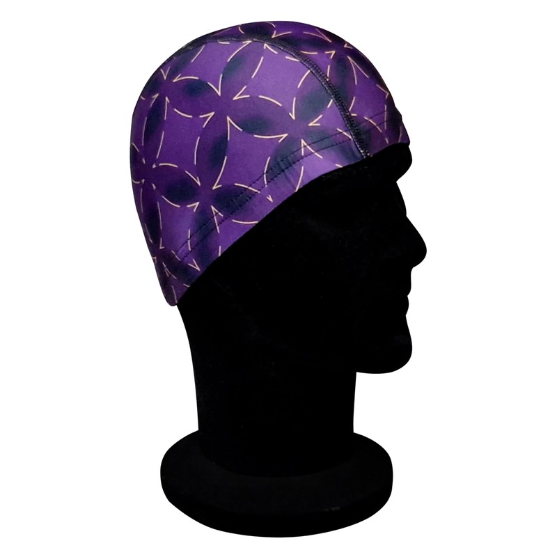 CHEX Elasticated Nylon Lycra Stretchy Anti Tear Easy Fit Geometric Atlantic Print Lightweight Pull On Swimming Hat Swim Cap One Size Suitable For Ages 3+ Years (Purple Print)