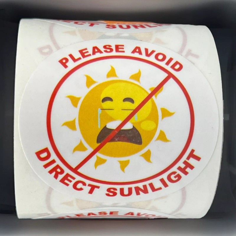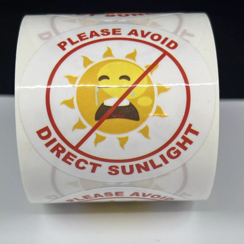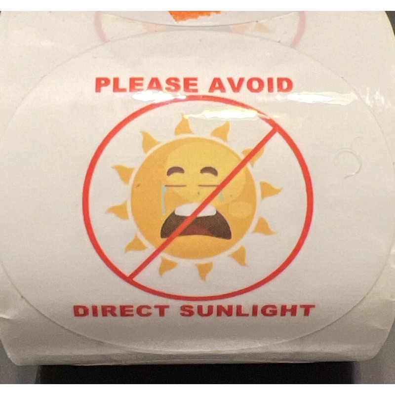 AVOID DIRECT SUNLIGHT 100 Stickers 2” Circle Weather Proof Warning Labels