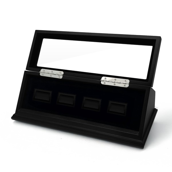 CHEZ MONETT Championship Ring Display Case Big Ring Storage Box (Matt Black, 4 Slots)