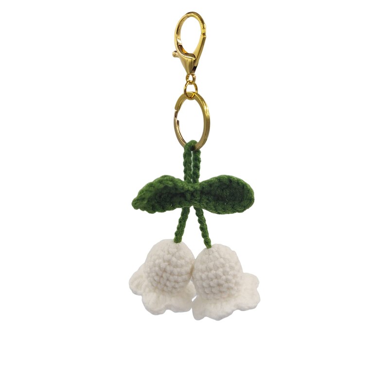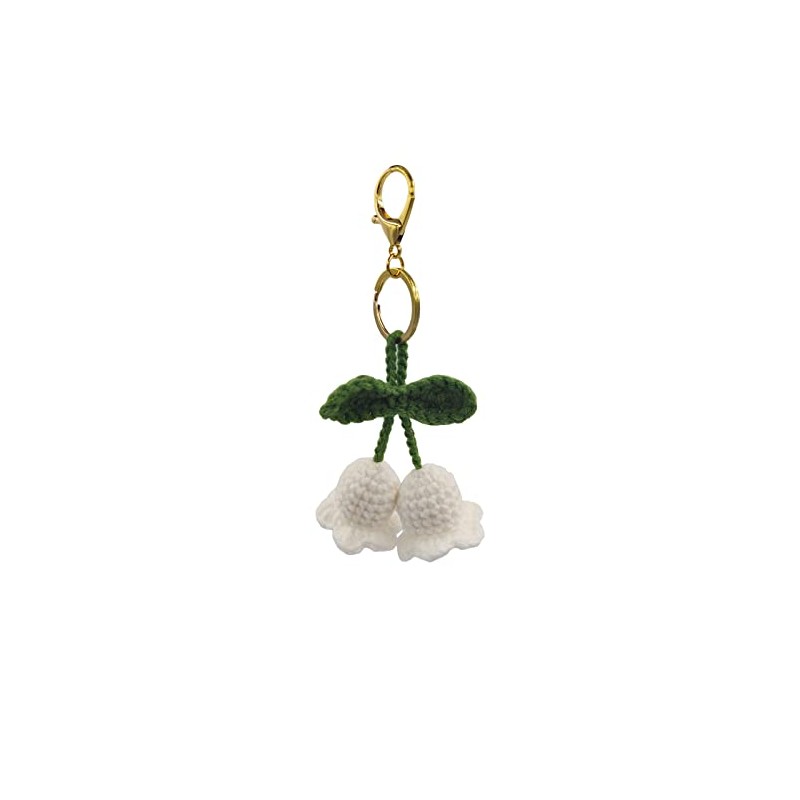 CHEZBABY Handmade Crochet Cute Bag Charm Key Chain Car Keyring Handbag Cute Purse Charm Pendant for Man and Women, Lily of the Valley