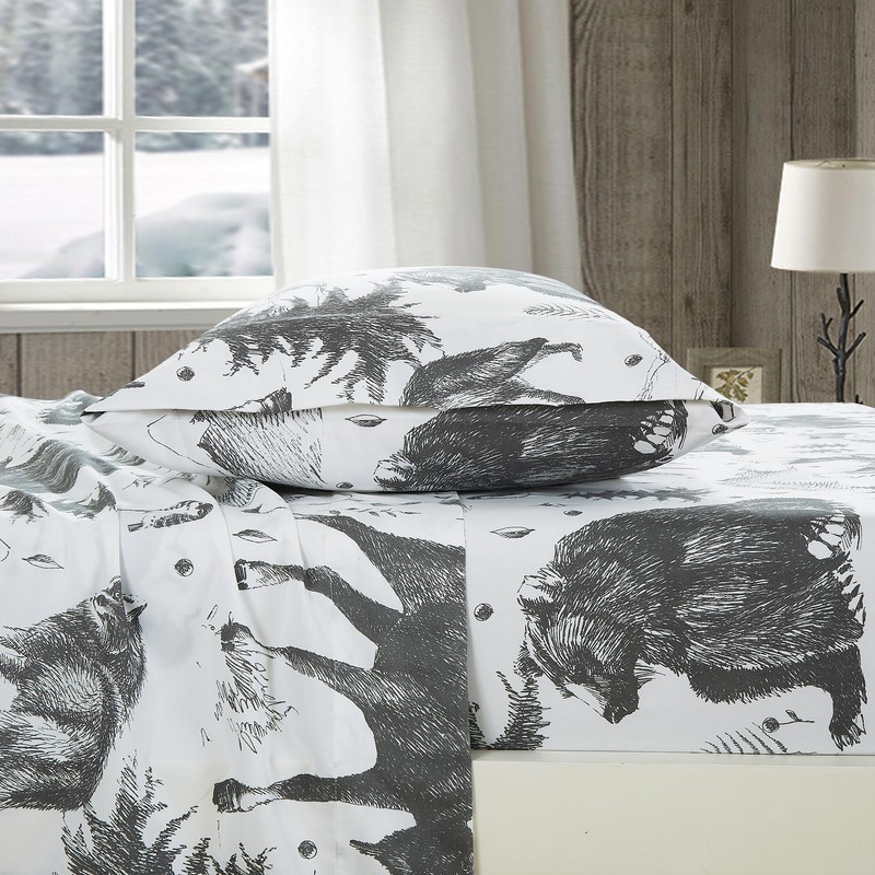 - Cabin Lodge Style 4-Piece Sheet Set Includes: 1 Flat Sheet, 1 Fitted Sheet, 2 Pillowcases
