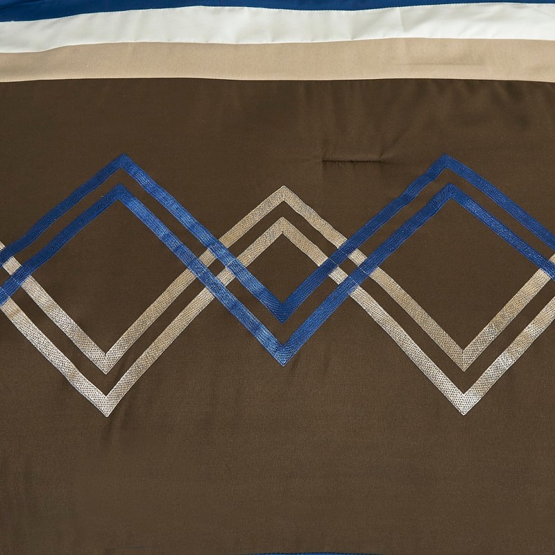 Chezmoi Collection Arden 7-Piece Modern Pleated Stripe Embroidered Zigzag Bedding Comforter Set (Queen, Coffee/Brown/Navy/White)