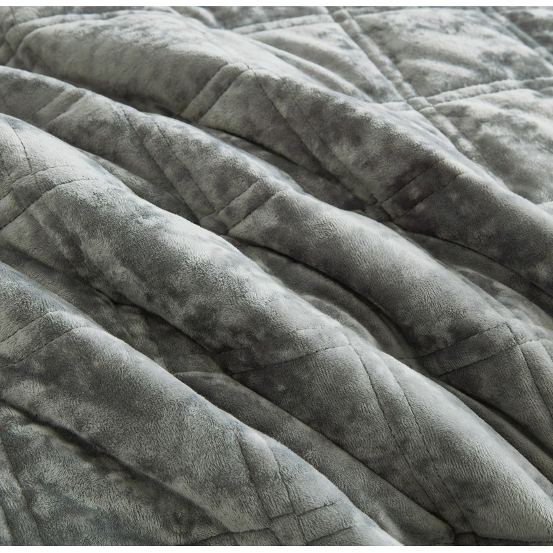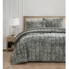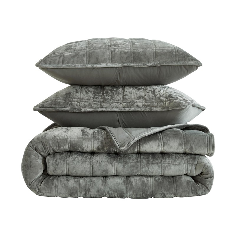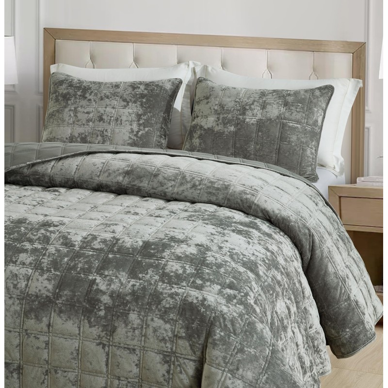 Chezmoi Collection Piers Medium Gray Velvet Quilt Oversized King Set, 3-Piece Plush Distressed Velvet Bedding All Season Lightweight Comforter - Brushed Microfiber Reverse with Double Square Stitch
