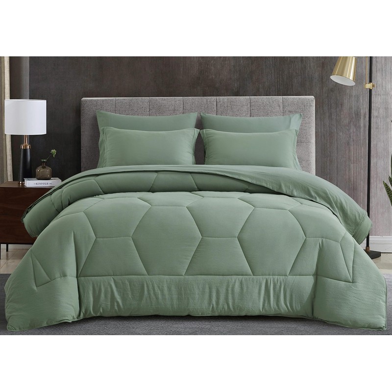 Chezmoi Collection Piper Queen Bed in a Bag 7-Pieces Honeycomb Geometric Hexagon Quilted Stone Washed Microfiber Comforter with Sheets Lightweight All Season Bedding Set (Queen, Sage Green)