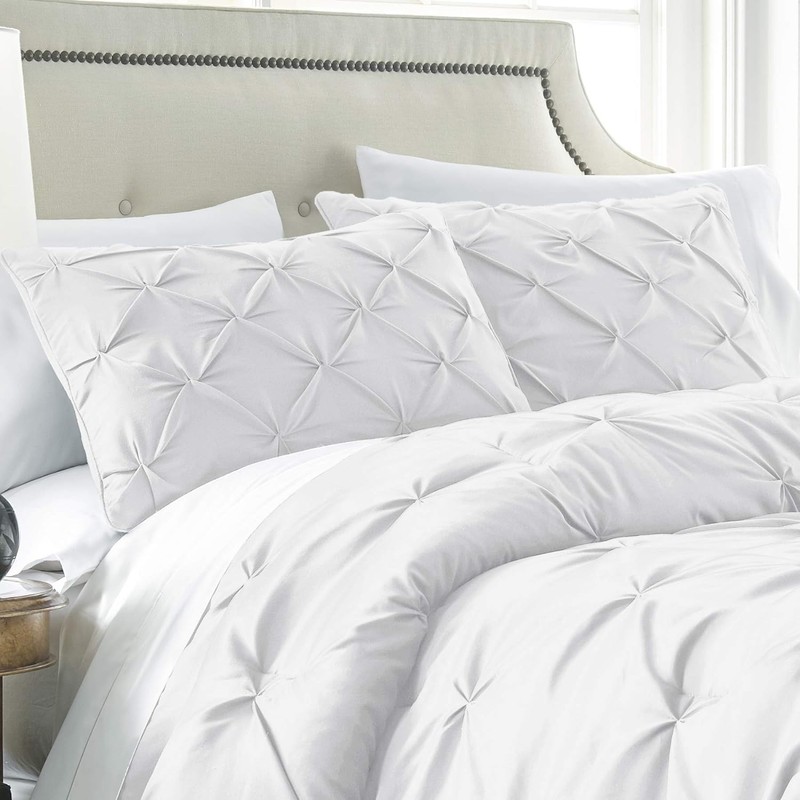 - An attractive appearance with a classic pinch pleat style comforter to decorate your room with lavish. Elegant and charming, uplifting design in a rich, vibrant solid color to perfectly balance with your bedroom décor. The edges are piped for a neat tailored look as well as added durability.
