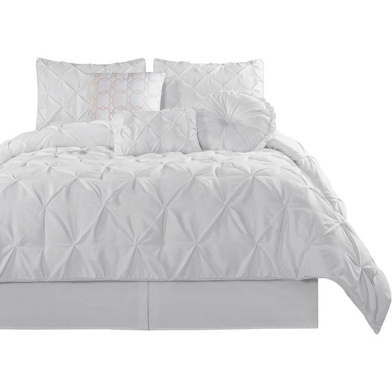 Chezmoi Collection Sydney White Comforter Set Extra Wide King Size 7-Piece Pinch Pleated Pintuck Comforter Lightweight Bedding for All Season