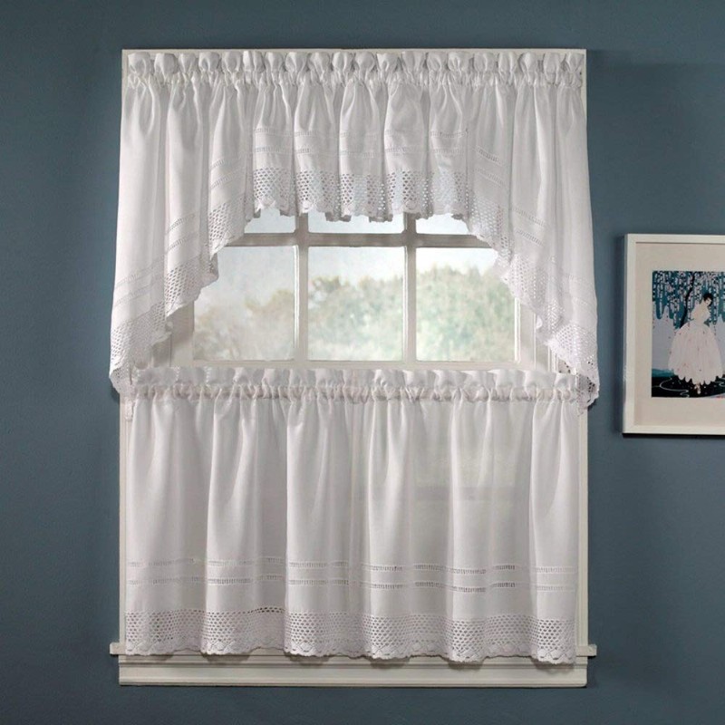 CHF Industries Crochet Tiered Kitchen Curtain - One Pair