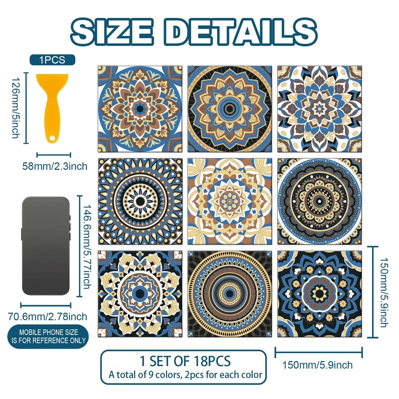 - Blue Brown Geometric Patterns: Our stick on tiles are designed with 9 different blue brown geometric patterns, vibrant and natural, which enhance your interior makeover, you can stick them in different rooms according to your own ideas, the vivid patterns inject new vitality into your space