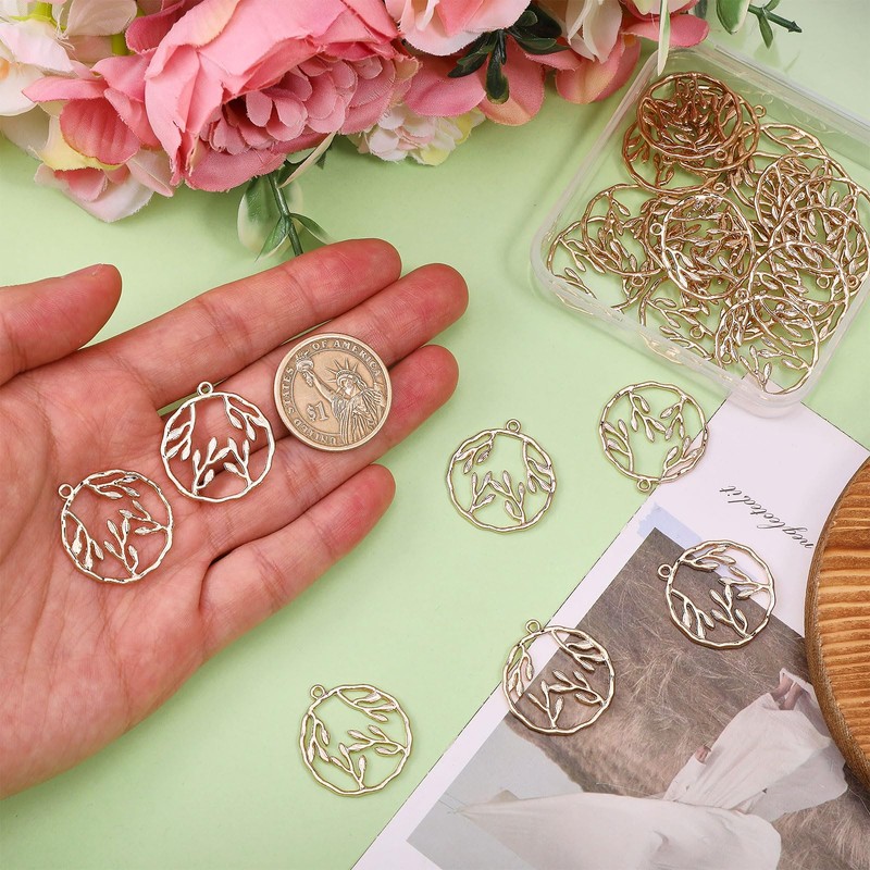 CHGCRAFT 24 Pcs Leaf Open Bezel Charm Alloy Hollow Frame Pendant Open Frame Pendant Charms for Resin Jewellery Making DIY Earring Keychain Necklace Kit