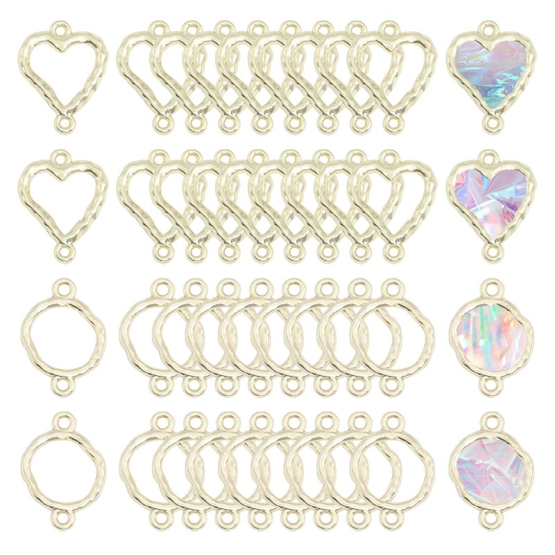 - Diverse Shape Selection: This connector charm set includes two distinct styles—Heart and Ring—featuring a variety of mixed shapes that add unique flair to jewelry design.