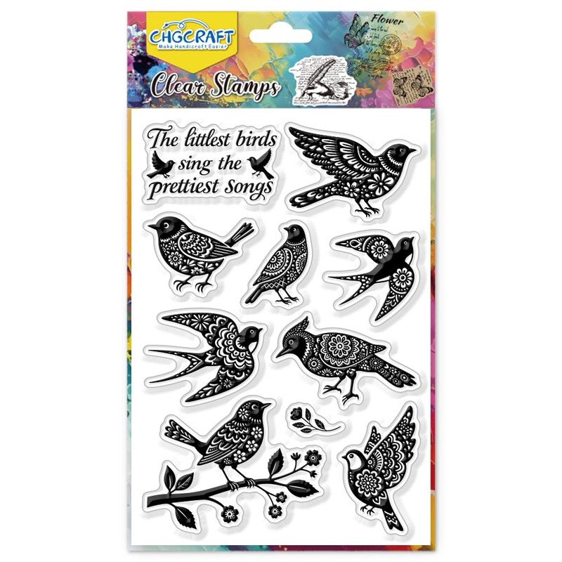 - Artistic Floral Bird Transparent Stamp: This clear stamp, which artfully combine bird silhouette, mandala pattern in artistic floral bird themed design that elevates handmade creations, is a tool crafted for festivals, birthdays, and the decoration of artistic works such as greeting cards and scrapbooks