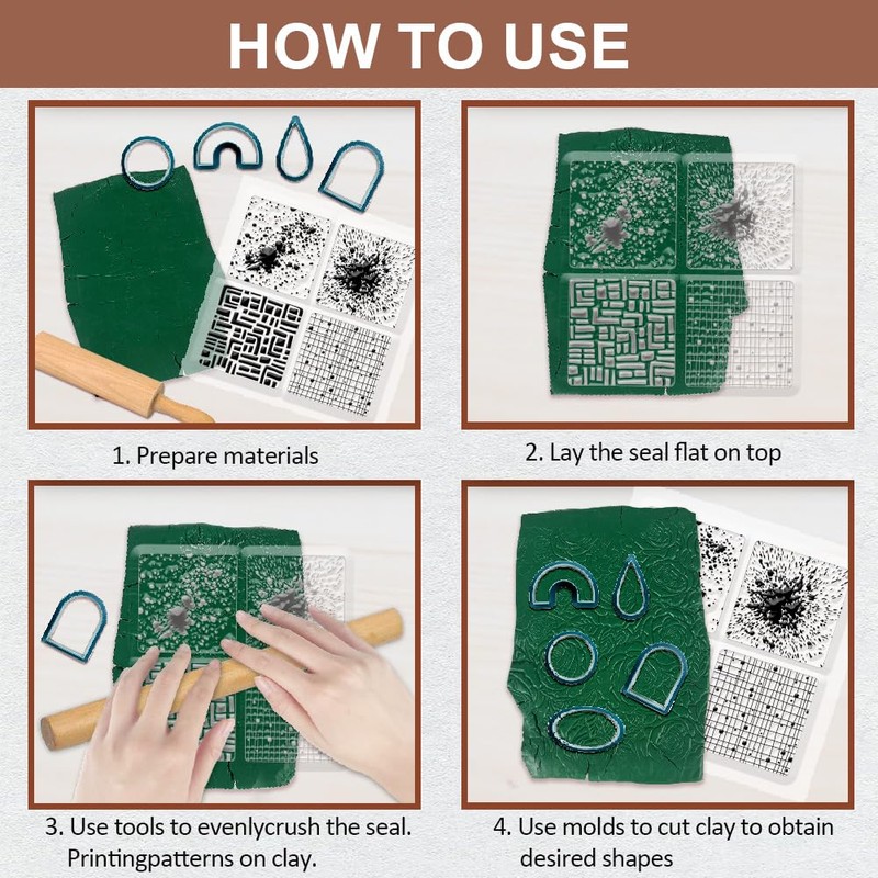 - How to Use: You just need to place the material on the rubber clay texture mat, use acrylic rollers and other related tools to press, and you will get the pattern on the mat. You can further color it to make the finished product style you want