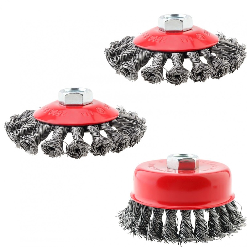 - Wide Application: Knotted wire cup brush is widely used for cleaning grills, cinder blocks, ovens, fireplace stones, brake calipers and auto parts, etc. for corrosion removal and paint stripping