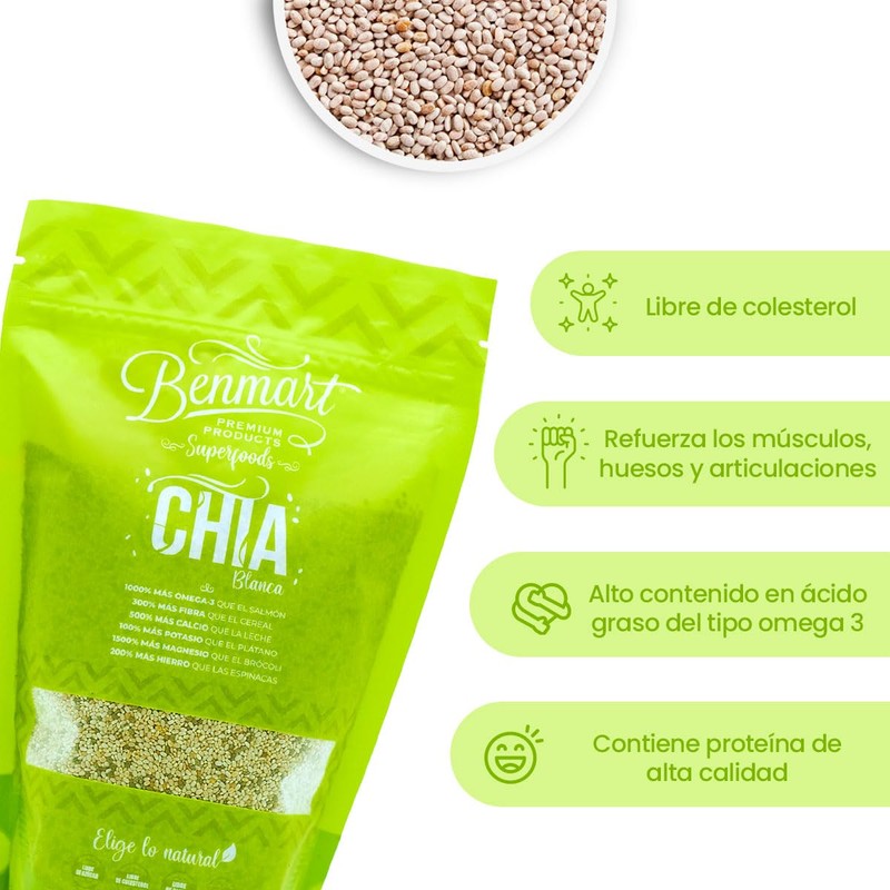 - Semilla rica en fibra, antioxidantes y omega 3, 6 y 9.