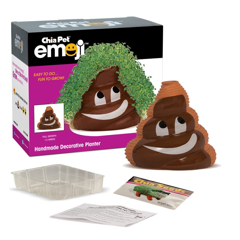 Always hilarious while also cute, it's Poopy Emoji Chia Pet! Sometime Poopy emoji is just the emoji you need, and now you can grow Chia on it! Just spread the seeds, water, and watch it grow! Collect all of the Emoji Chia Pets today! Handmade terracotta pottery planter comes with 1 packet of Chia? seeds good for 3 plantings, convenient plastic drip tray and planting & care instructions. In just 1-2 weeks your Poopy Emoji Chia Pet will achieve maximum growth. Chia Planters can be washed and replanted indefinitely. Makes a great gift!