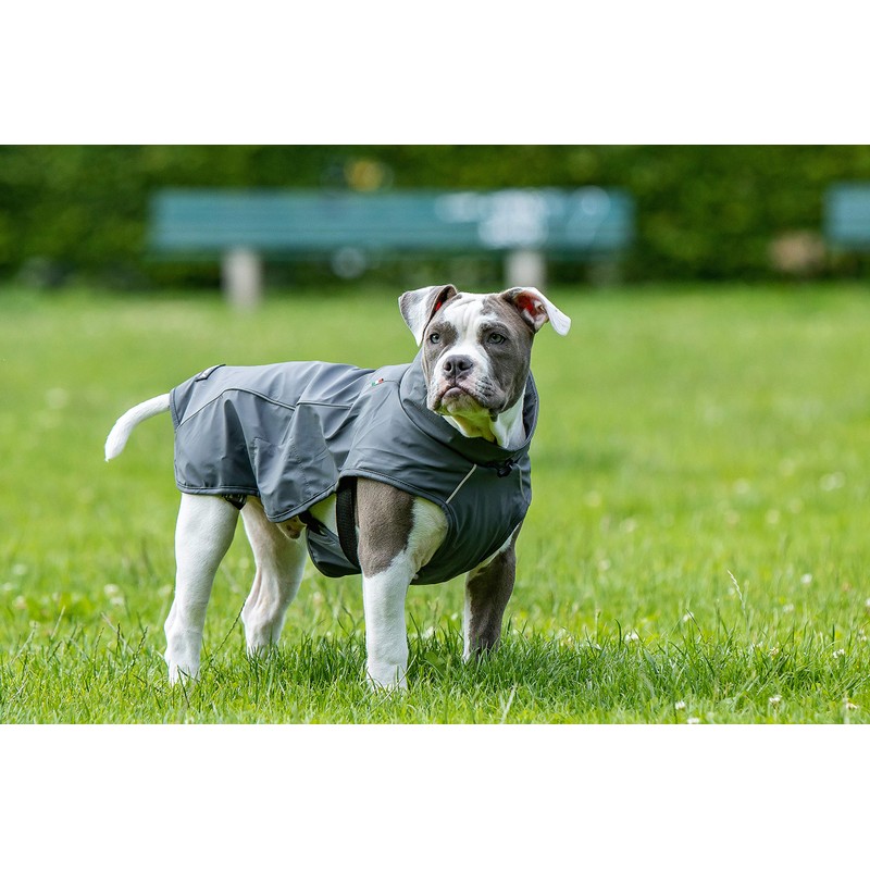 - Box contents: CHIARA rain jacket with harness model Finn, wind and waterproof, machine washable, size L, body length: 40.6 cm, neck circumference: 39 ~ 44 cm, chest circumference: 52 ~ 57 cm, colour: grey