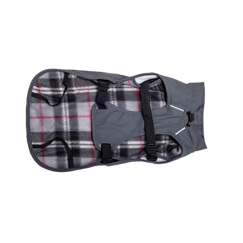 CHIARA Rain Jacket with Harness, Model Finn Size L (All Weather Jacket with Fleece Lining, Wind and Waterproof, Reflective Stripes, Adaptable to Any Dog, Machine Washable), Colour: Grey