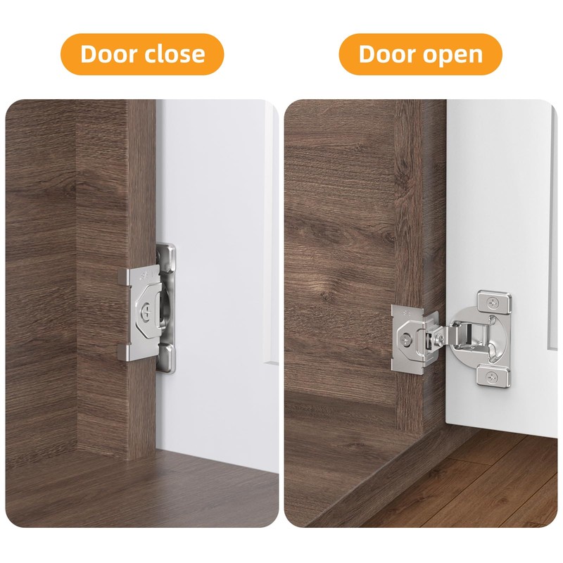 - Double Electroplated: The material of our overlay cabinet hinges is high quality steel with a nickel plated finish and brass plated bottom. Durable and perfect for kitchen cabinet doors, wardrobes, TV cabinets, bookcases, wine cabinets, and other luxury door connections.