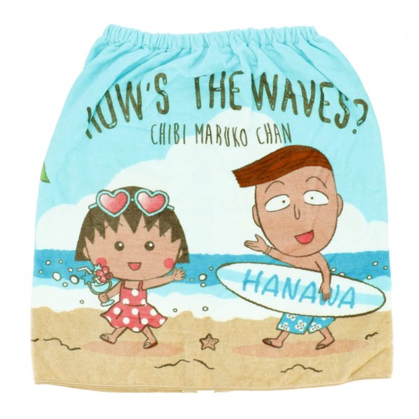 Chibi Maruko-chan Wrap Towel, 23.6 inches (60 cm) Length, Roll Towel, Maruko & Garland-kun, Surf