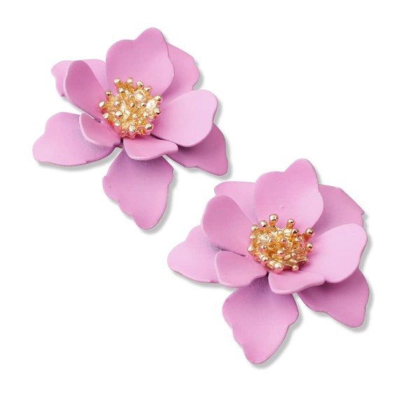Chic Cute Boho Matte Flower Statement Stud Earrings with Gold Flower Bud for Women Sister Mom Lover and Friends, Acetate, Sterling Silver