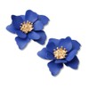 Chic Cute Boho Matte Flower Statement Stud Earrings with Gold Flower Bud for Women Sister Mom Lover and Friends (Blue)