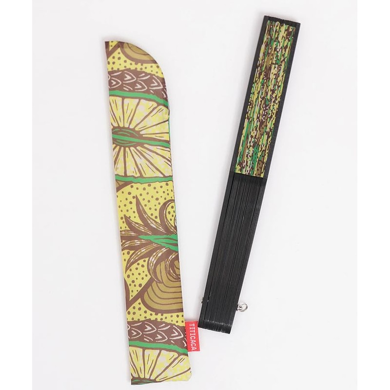 Chicaca ZOSCBD7044 Women's Fan, Ethnic Print, Includes Storage Bag, Japanese Accessories, yellow, Free size