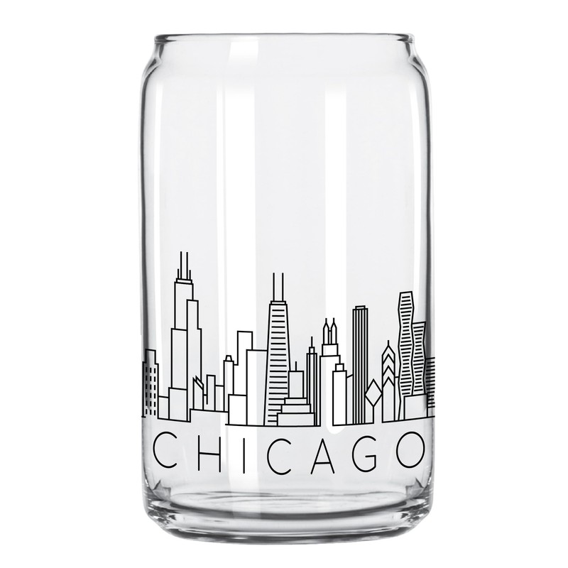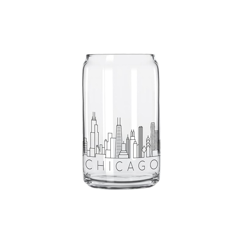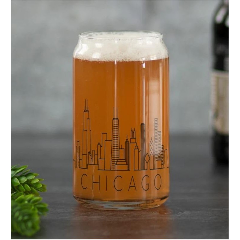 Chicago Skyline Beer Can Glass, 16 oz, Clear Glass with City Design