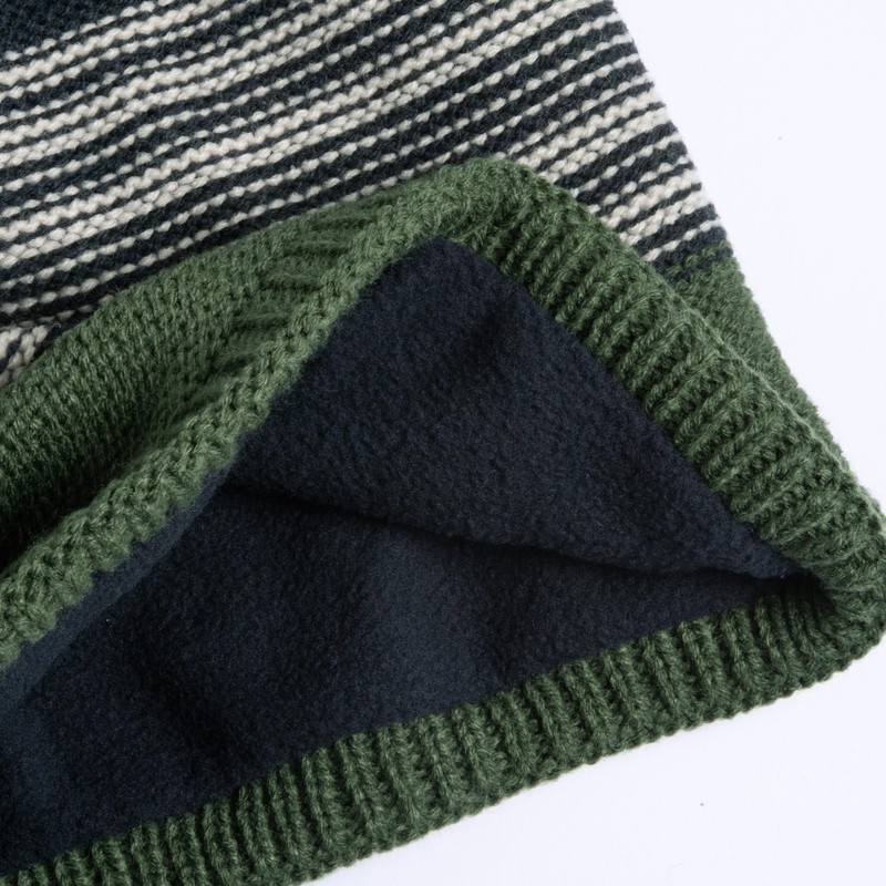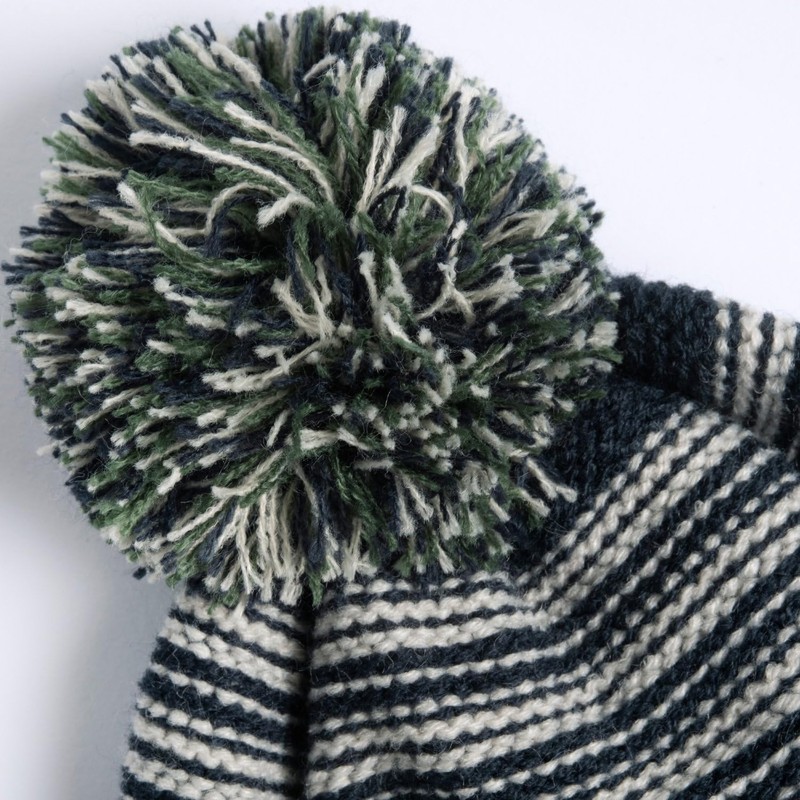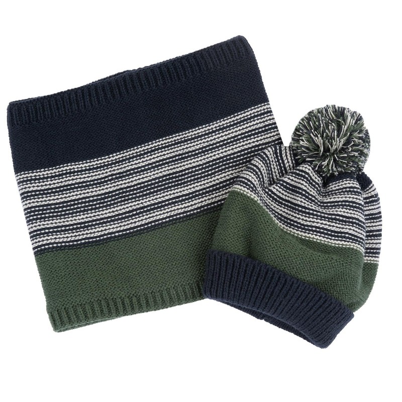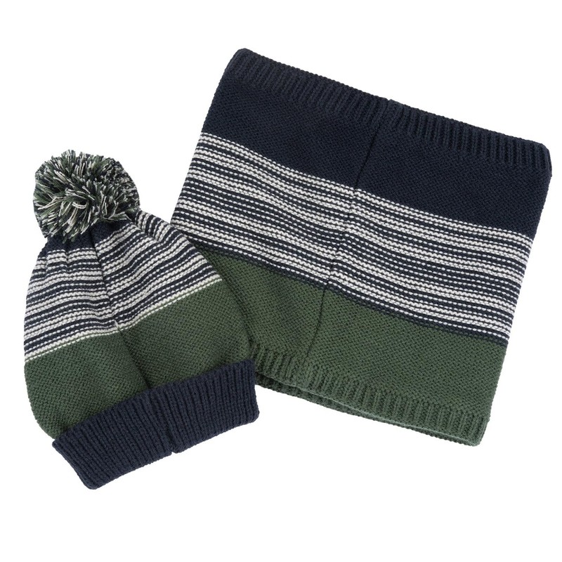 - Fashionable: set with bobble hat and scarf, blue, green and grey