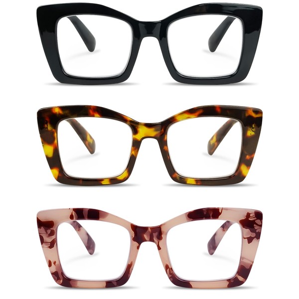 Chiccool Oprah Style Reading Glasses for Women,3 Pack Oversized Square Stylish Blue Light Blocking Comfortable Computer Readers +2.75