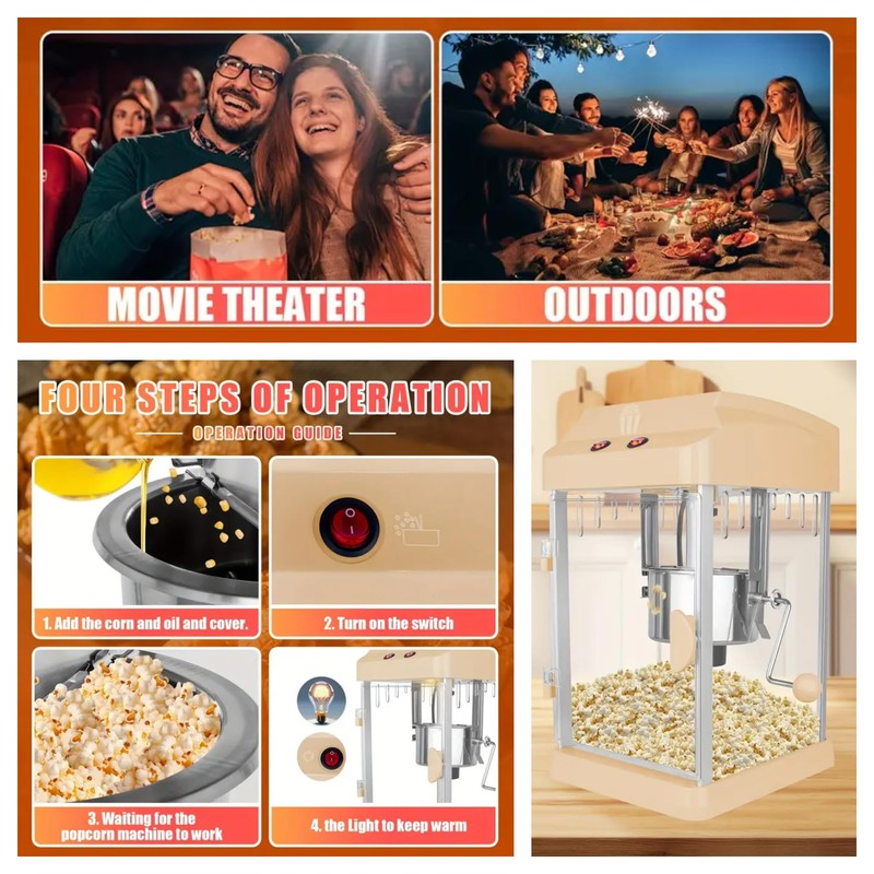 - Efficient Popcorn Making: The 300W popcorn machine has a 4-ounce stainless steel kettle that can pop 5-6 servings of popcorn in just minutes, boasting an up to 99% popping rate