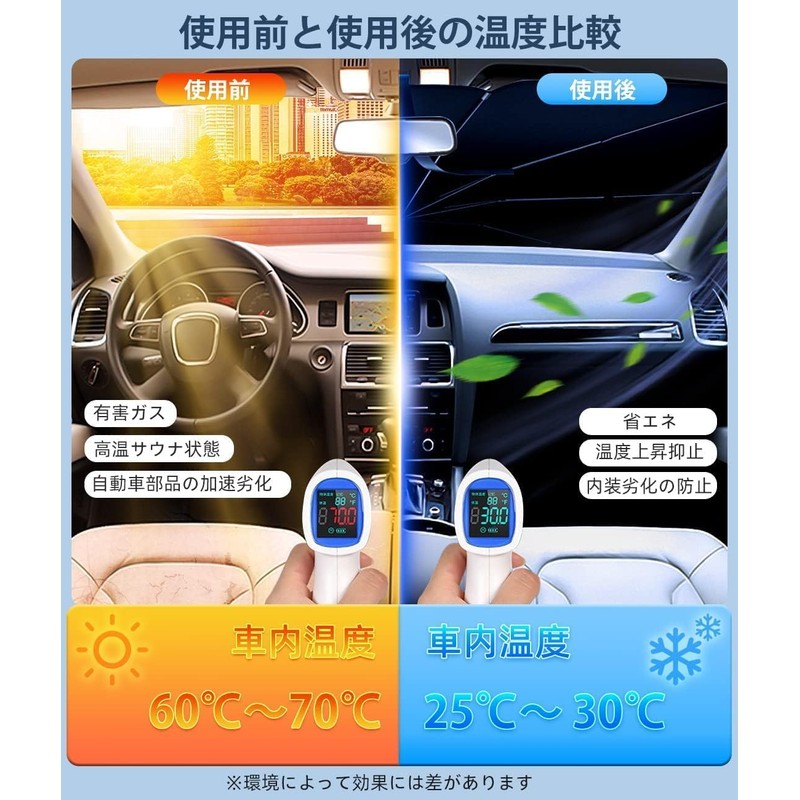 - (Excellent Durability & Cooling) This car sun shade uses an efficient composite titanium silver adhesive. Umbrella surface: Nylon, composite titanium silver adhesive. Effectively reduces the temperature of the car and prevents damage and aging; Umbrella rib: aluminum alloy, steel rib; Umbrella handle: ABS plastic. The sun shade blocks heat and reflects sunlight, effectively blocks 99.5% of UV rays, prevents interior deterioration. Reduces interior temperature, reduces air conditioner load and improves fuel economy. It will keep you cooler every time you park