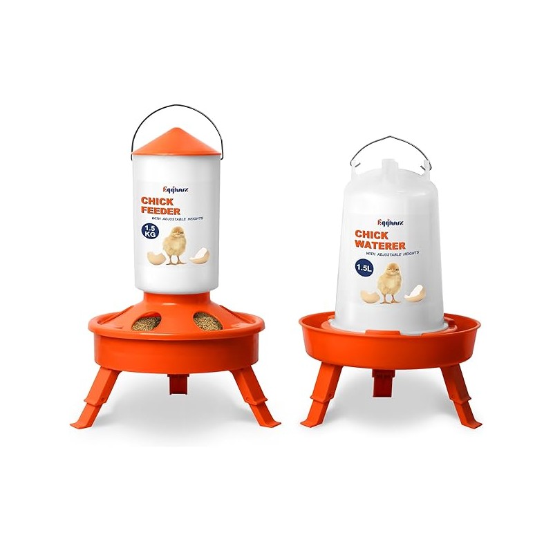 Chick Feeder and Waterer Kit, Top Fill 1.5kg Chick Feeder and 1.5L Chick Waterer with 3 Adjustable Heights