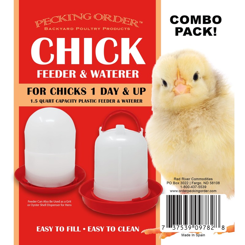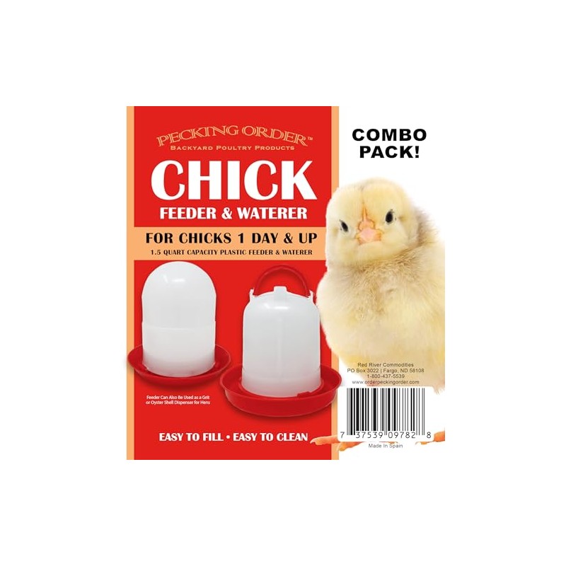 - COMBO PACK INCLUDES: 1.5 Quart Plastic Feeder and a 1.5 Quart Plastic Waterer with Handle