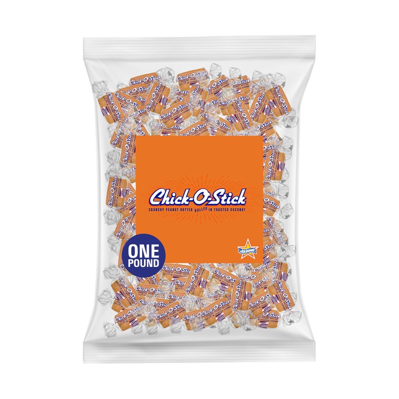 Atkinson's Chick-O-Stick - Crunchy Peanut Butter Rolled in Toasted Coconut - Gluten Free, Kosher, Vegans, No Artificial Ingredients - 1 lb. Laydown Bag