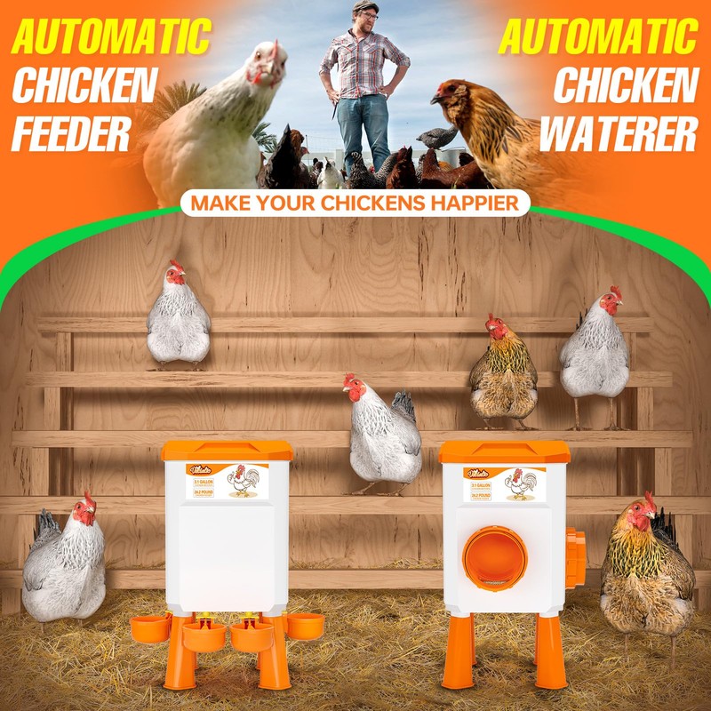 • 🐔CUSTOMER SATISFACTION GUARANTEED - Suitable for chicks, layers, and adult chickens, this set accommodates various flock sizes. The ergonomic design encourages natural feeding and drinking behavior, promoting the health and well-being of your poultry. Perfect for both beginners and experienced poultry keepers, this chicken feeders and waterers set is a practical and reliable solution for keeping your flock happy and healthy!