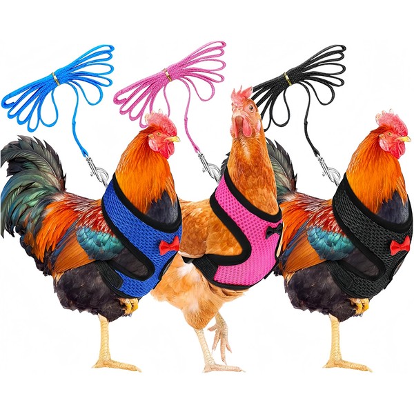 Chicken Harness with Lead, 3 Pieces Chicken Harness, Adjustable, Breathable, for Duck, Goose, Hen, for Running Training, Size M
