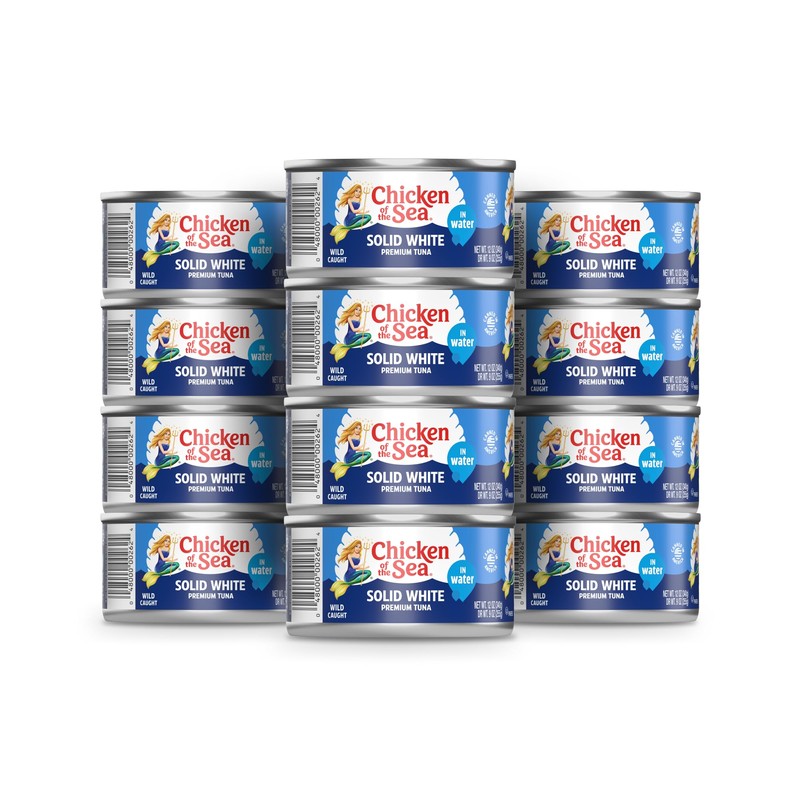 Chicken of the Sea Wild Caught Premium Solid White Albacore Tuna in Water, 12 oz Cans, 12-Count – High Protein 100% Classic Tuna in Water – Delicious, Easy, Nutritious Ready to Eat Meals