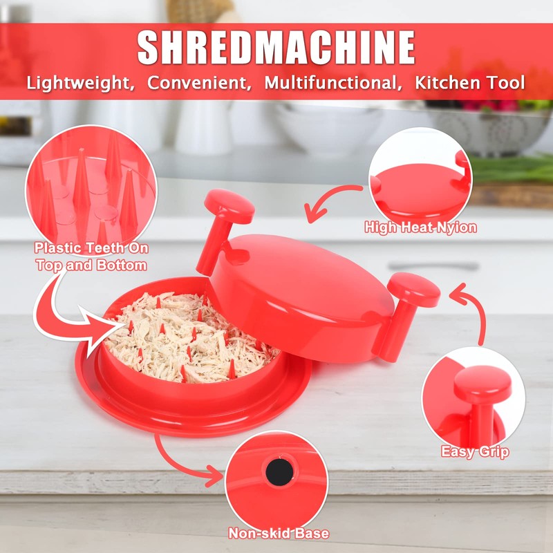 Chicken Shredder Shred Machine, Chicken Shredder Tool Twist, Meat Shredder with Handles and Non-Skid Base, Shred Machine Tool for Pork, Beef and Chicken,Dishwasher Safe - red