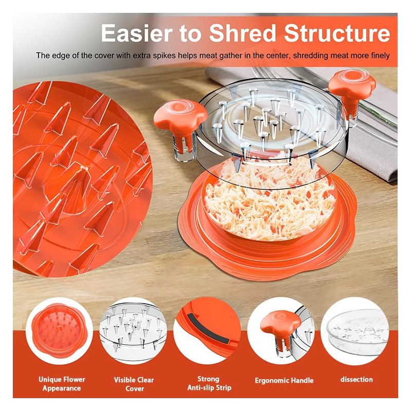- 【Perfect Gift】: Chicken Shredder can be used for burritos, chicken salads, fried tortillas, barbecue sandwiches, tacos, casseroles, and is very suitable as a gift for relatives and friends.The flower appearance design and the transparent lid add polka dots seem like a beautiful flower to bloom