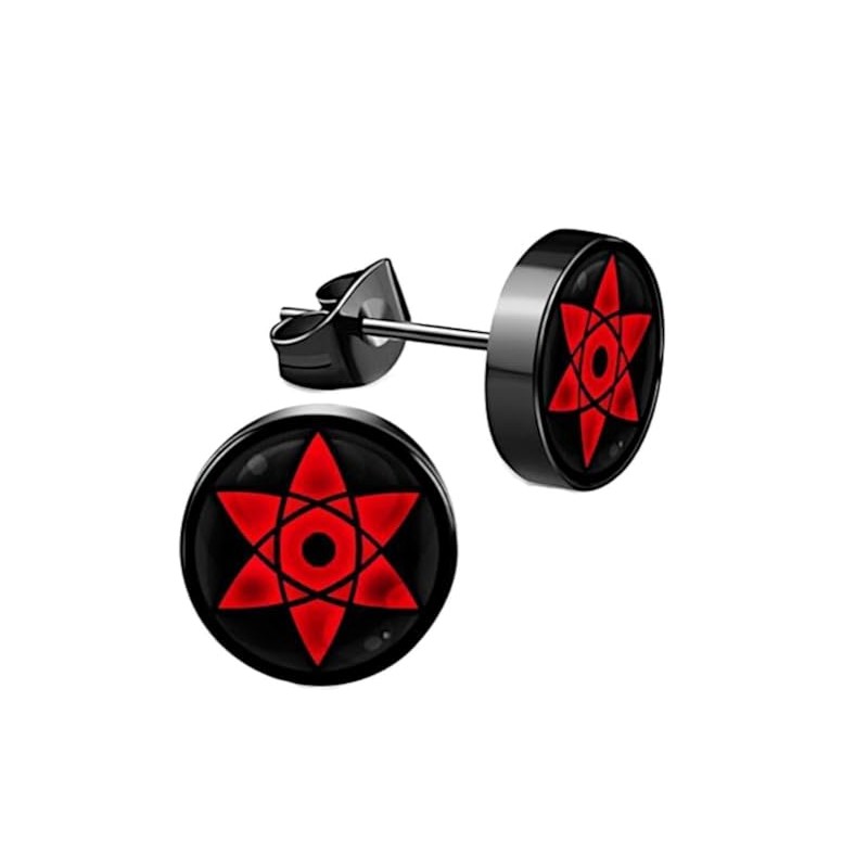 CHICNET Stainless Steel Stud Earrings Black 8 mm Red Sharingan Eye Anime Manga Ear Jewellery Surgical Steel Unisex Men Women Men