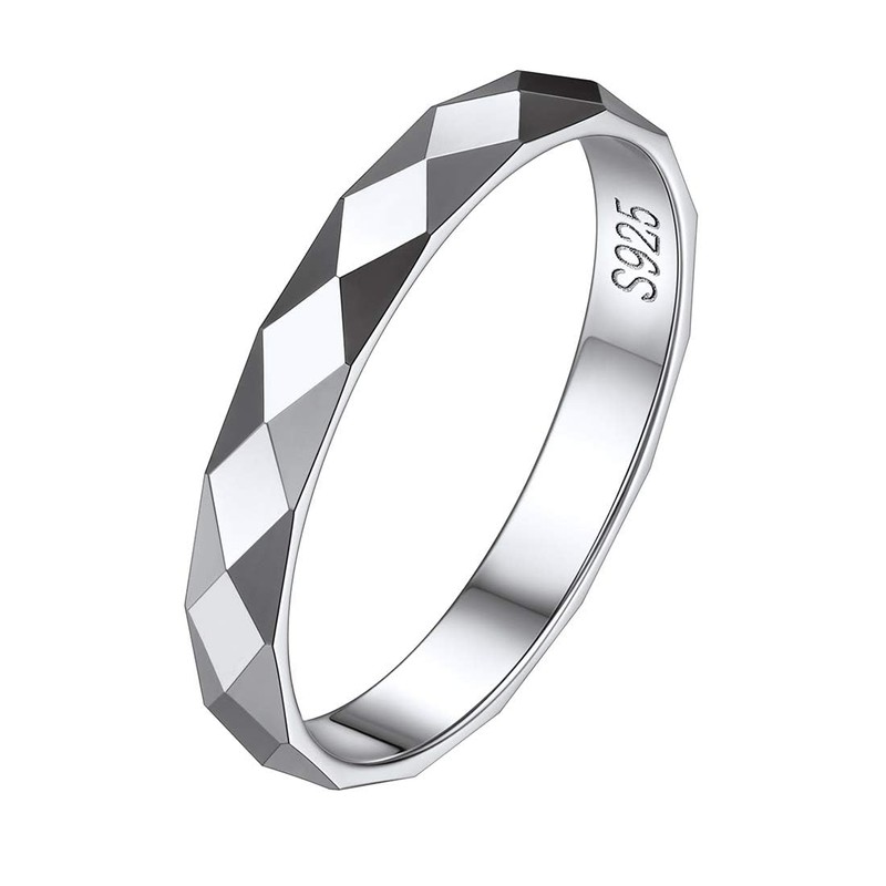 ChicSilver 3mm Silver Rings for Women Multi Faceted Domed High Polished Comfort Fit Sterling Silver Promise Rings for Her Size 8