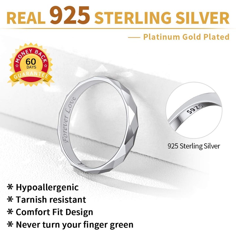 - ♥UNIQUE DESIGN ♥ - This sterling silver ring is a comfort fit ring, will be very comfortable on the hand. Classic Simple design, making the rings stunning to catch the eyes. This makes a perfect gift as a friendship ring, wedding band, engagement ring, promise ring and birthday present!