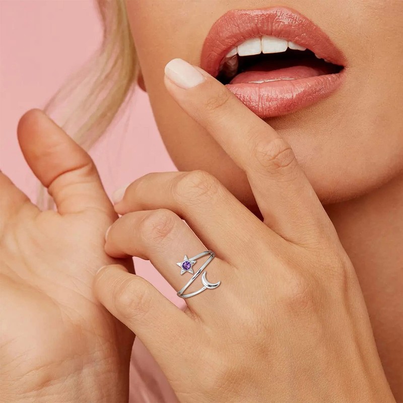 - Design: silver star and moon ring with birthstone for women. They make wonderful gifts for mothers or girlfriends, they also make delicate little promise rings